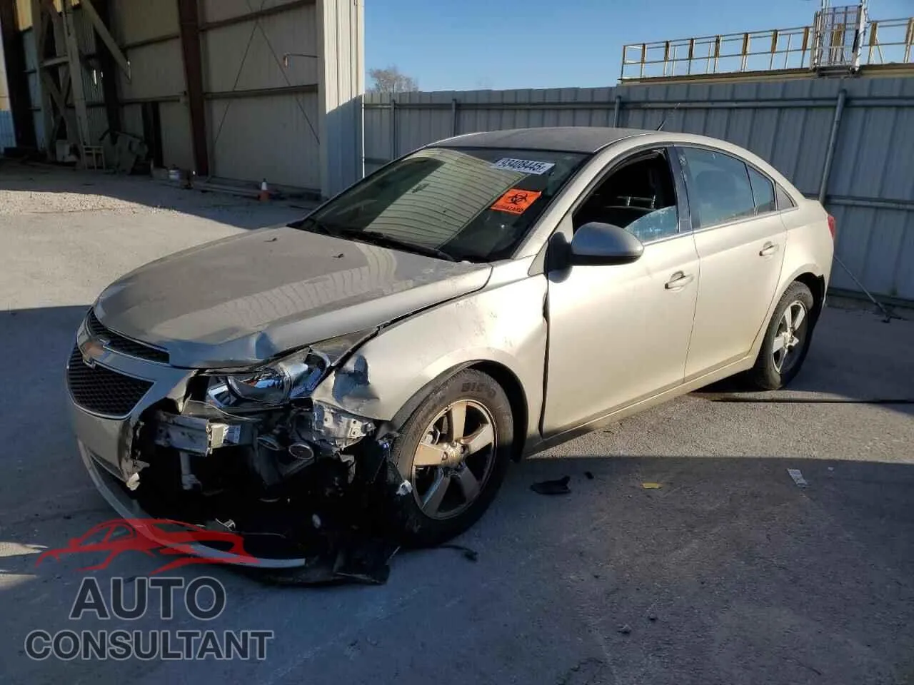 VIN 1G1PC5SB2E7471950 belongs to a 2014 CHEVROLET CRUZE. The exterior is finished in TAN. It is equipped with a GAS engine and a AUTOMATIC transmission. This listing shows the vehicle in damaged condition with an odometer reading of 117,505 km.