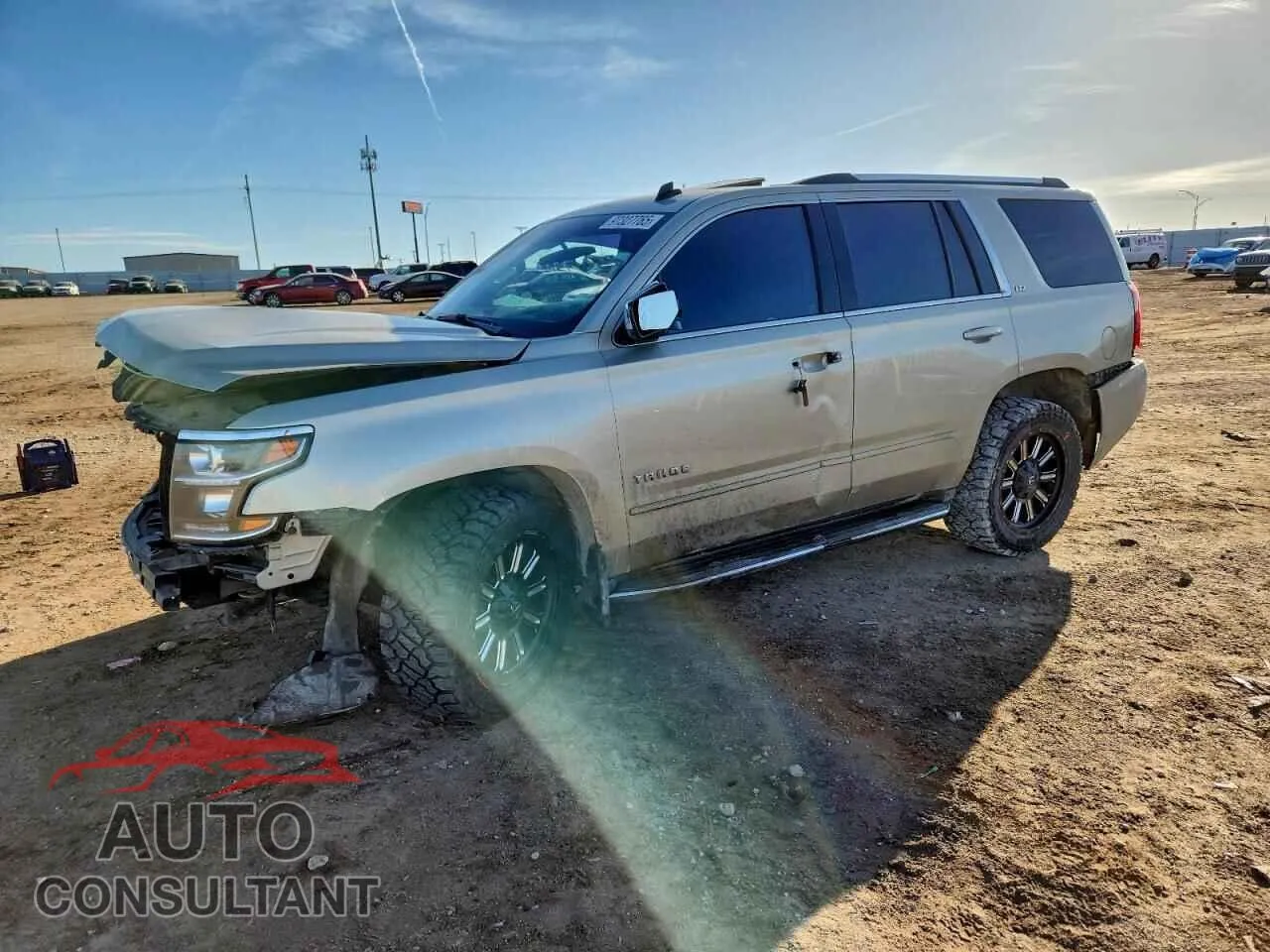 VIN 1GNSKCKC6FR296939 belongs to a 2015 CHEVROLET TAHOE. The exterior is finished in TAN. It is equipped with a GAS engine and a AUTOMATIC transmission. This listing shows the vehicle in damaged condition with an odometer reading of 143,046 km.