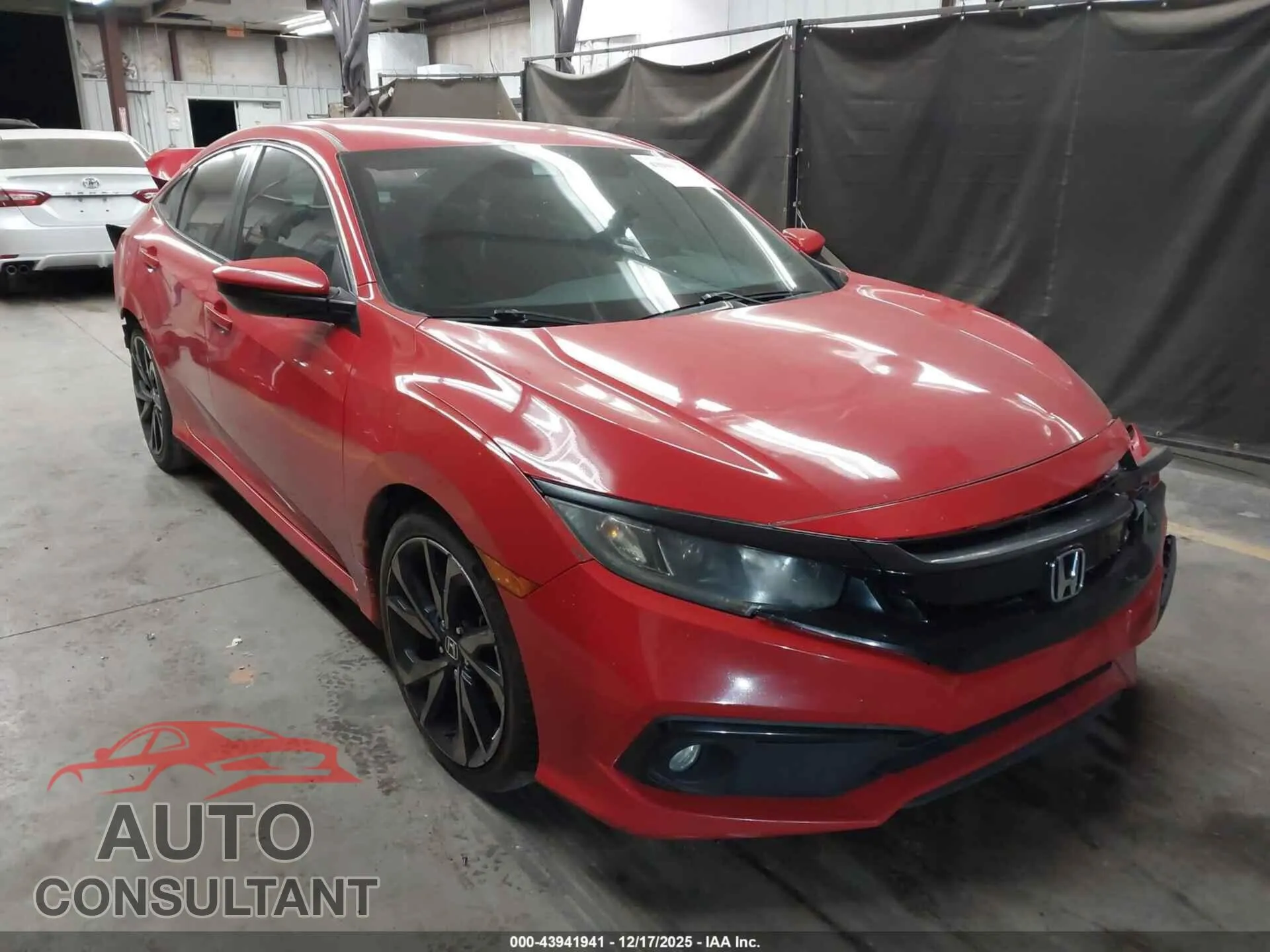 VIN 2HGFC2F82KH535986 belongs to a 2019 HONDA CIVIC. The exterior is finished in Red. It is equipped with a Gasoline engine and a AUTOMATIC transmission. This listing shows the vehicle in damaged condition with an odometer reading of 173,767 km.