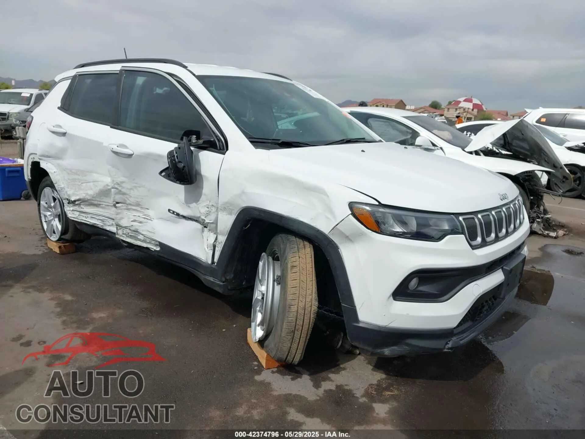 VIN 3C4NJDBB6NT115950 belongs to a 2022 JEEP COMPASS. The exterior is finished in White. It is equipped with a Gasoline engine and a AUTOMATIC transmission. This listing shows the vehicle in damaged condition with an odometer reading of 58,993 km.