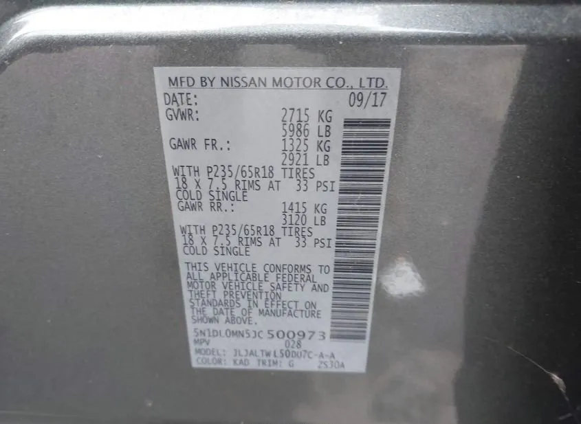 VIN 5N1DL0MN5JC500973 belongs to a 2018 INFINITI QX60. Here you can review the vehicle history, current status, and available condition details.