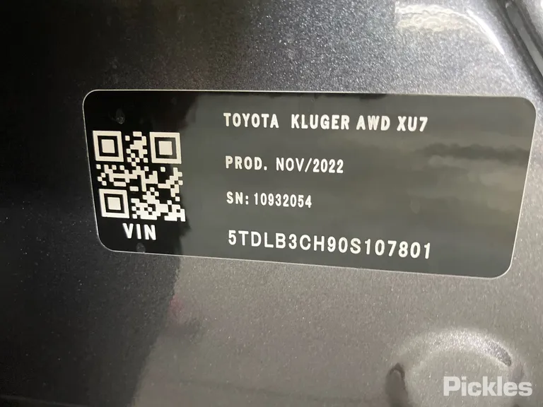 VIN 5TDLB3CH90S107801 belongs to a 2023 Toyota Kluger. The exterior is finished in Grey. It is equipped with a Direct & Multi-Point Injection Petrol - Premium UL engine and a 6 Spd Constantly Variable Transmission transmission. This listing shows the vehicle in used condition with an odometer reading of 27,384 km. Use this page to review the auction history, current status, and all available condition details before making any purchase decision.