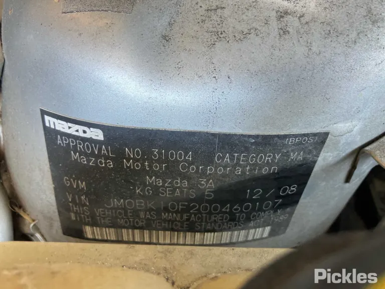 VIN JM0BK10F200460107 belongs to a 2008 Mazda 3. Here you can review the vehicle history, current status, and available condition details.