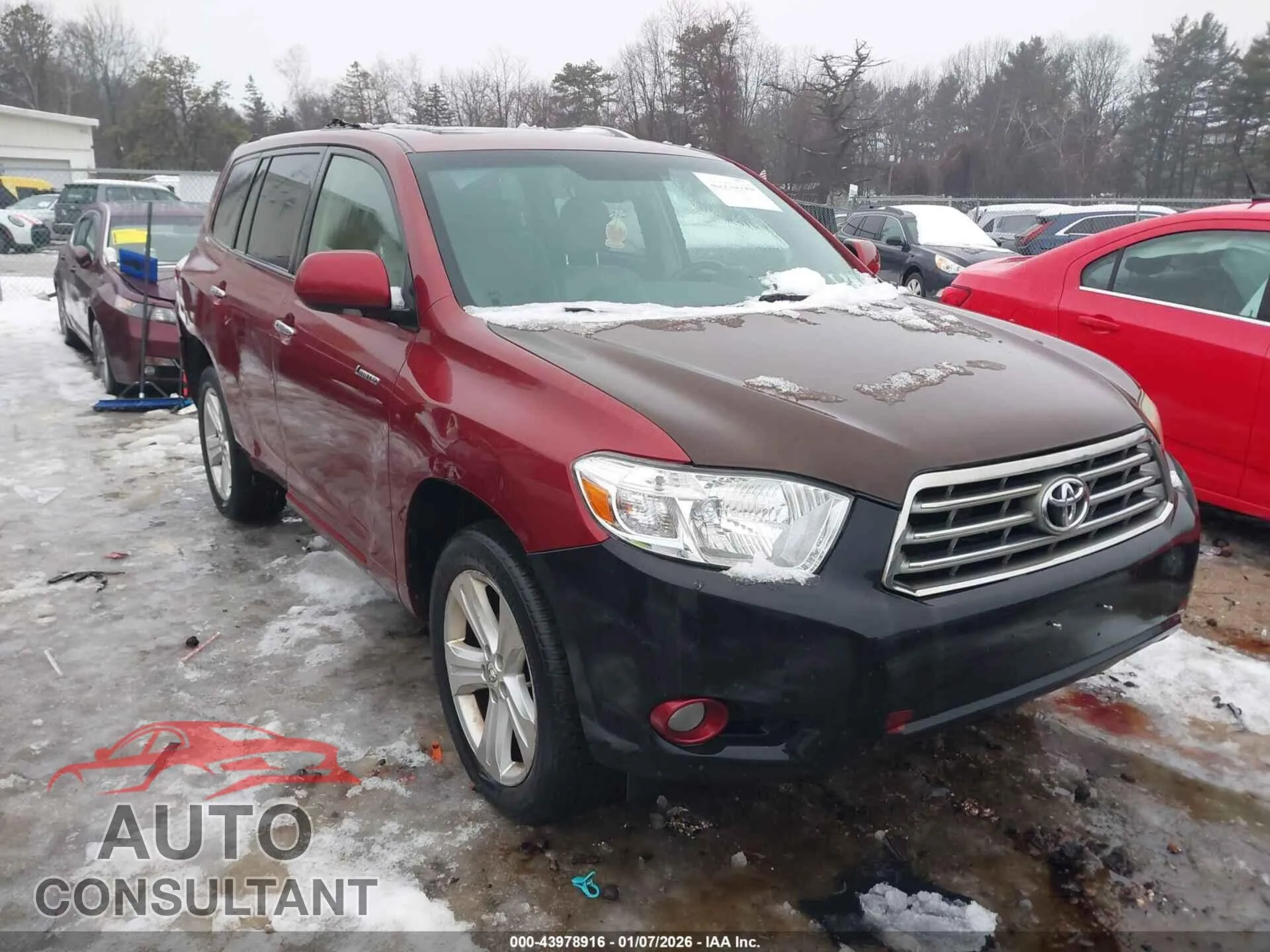 VIN JTEES42A392150713 belongs to a 2009 TOYOTA HIGHLANDER. The exterior is finished in Red. It is equipped with a Gasoline engine and a AUTOMATIC transmission. This listing shows the vehicle in damaged condition with an odometer reading of 368,182 km.