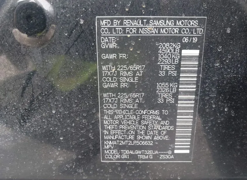 VIN KNMAT2MT2LP506632 belongs to a 2020 NISSAN Rogue. Here you can review the vehicle history, current status, and available condition details.