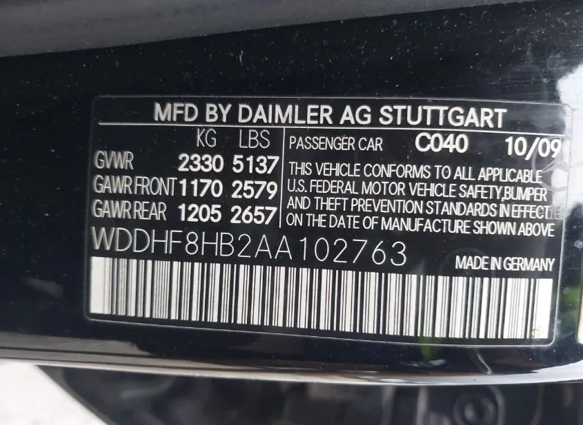 This 2010 MERCEDES-BENZ E-Class (VIN: WDDHF8HB2AA102763) report indicates no primary damage. Sourced from salvagebid, this data is crucial for assessment.